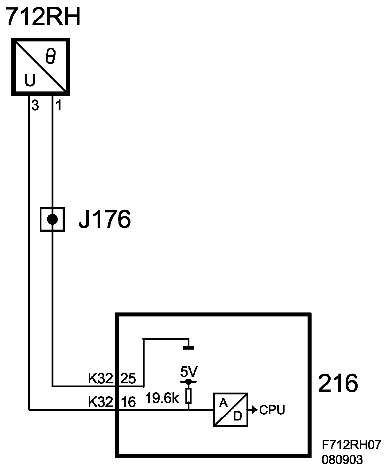 Sensor pin 1 has an internal ACC unit ground connection via pin 25 (K32) and sensor pin 3 receives a 5 V feed from pin 16 (K32) via an integrated 19.6 kOhm resistor in the ACC unit.