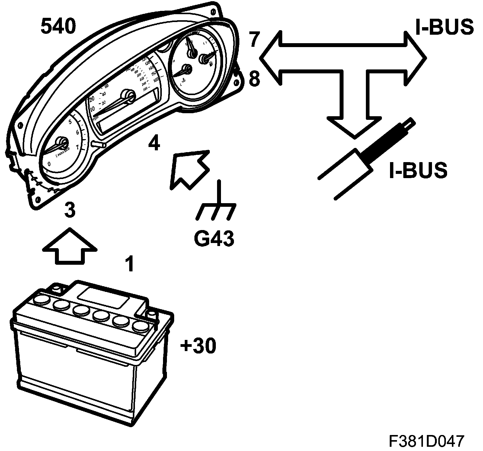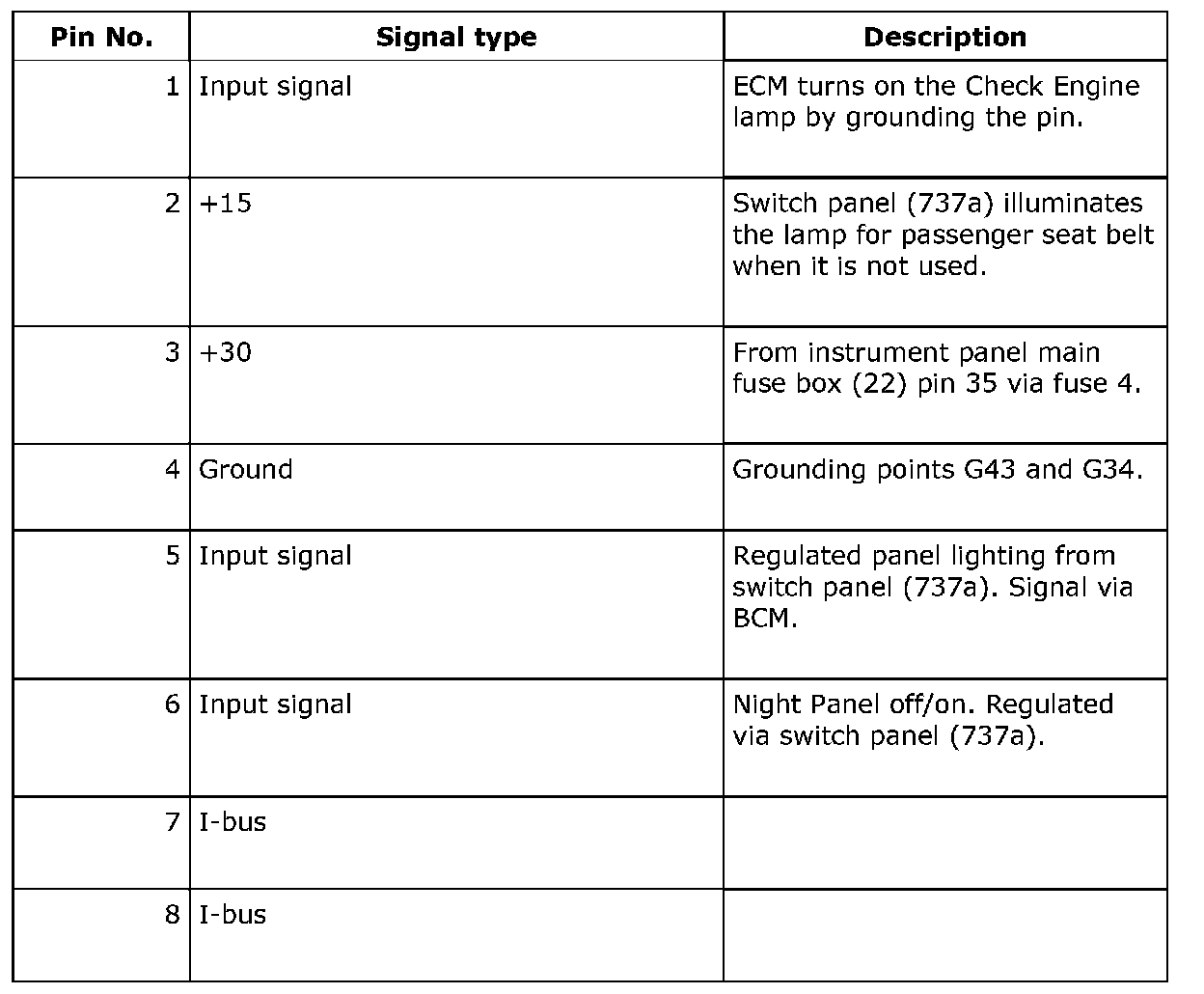 The main instrument unit lamps are turned on and the gauges activated via bus messages from other control modules on the I-bus except the Check Engine lamp, which the engine control module turns on by grounding a pin on the main instrument unit.