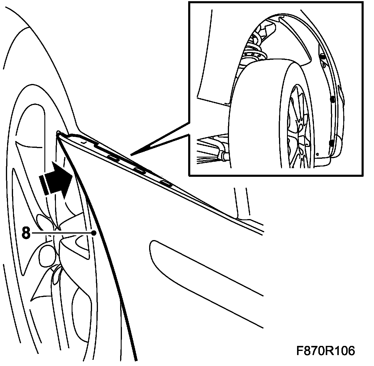 8. Fit the bumper's 3 screws in the right front wheel housing.