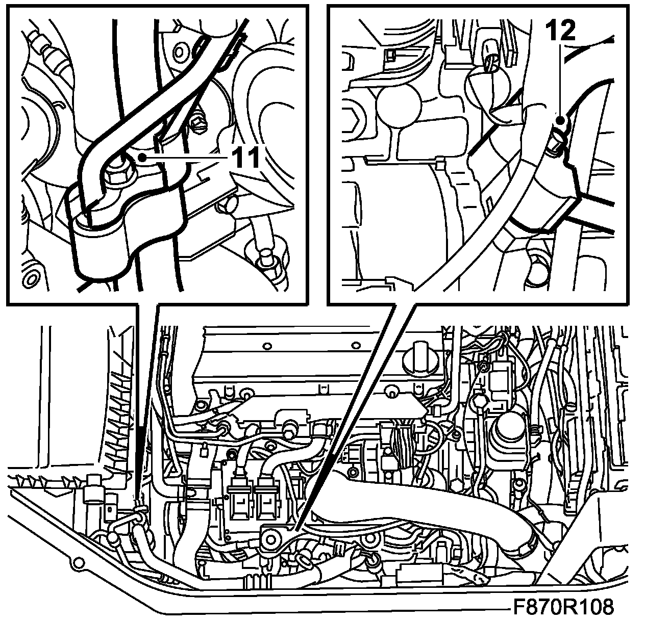 11. Replace the sealing washers and fit the PAD connection by the front right structural member.