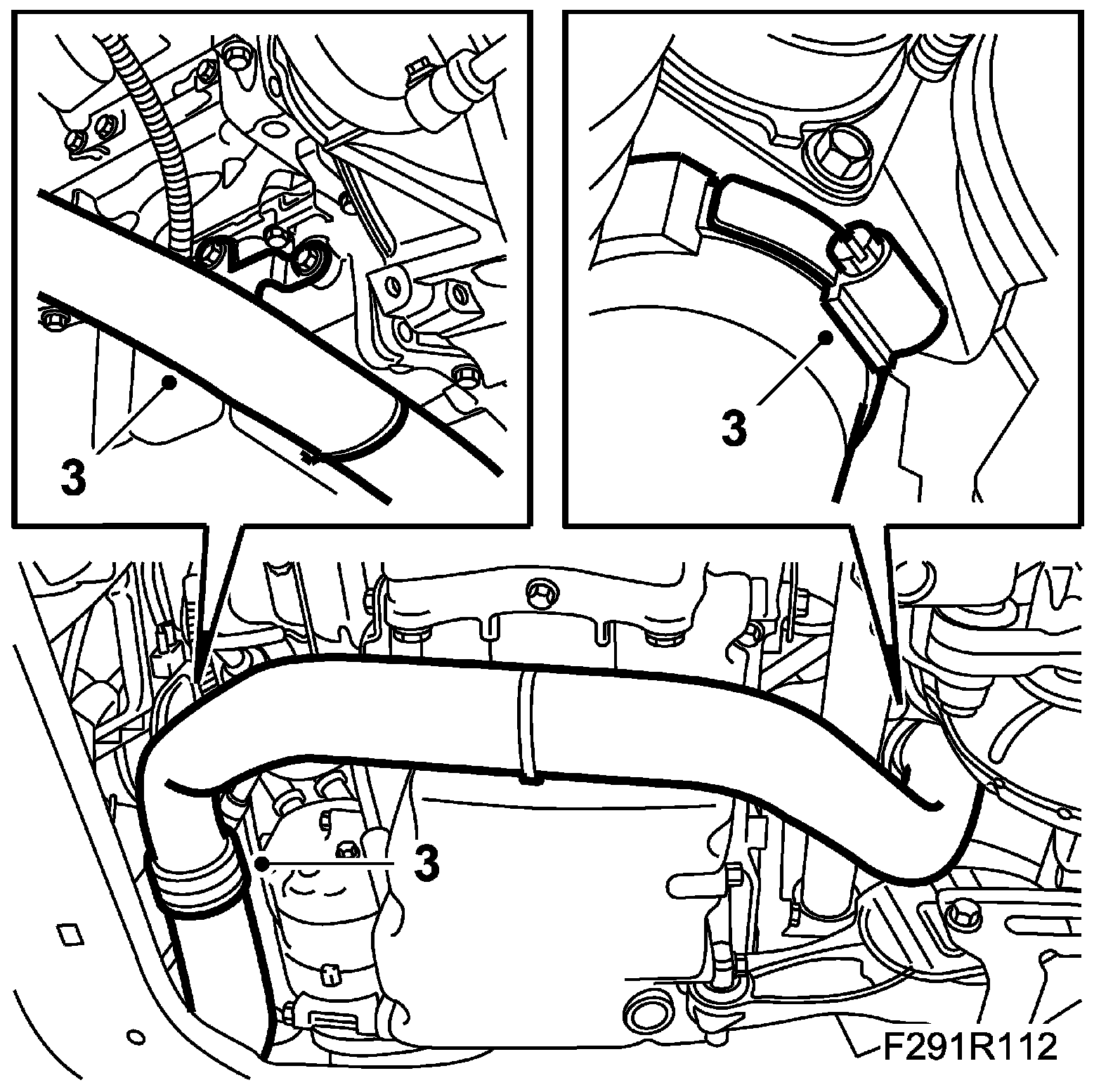 3. Detach the hose clamps and the bolts. Remove the delivery pipe.