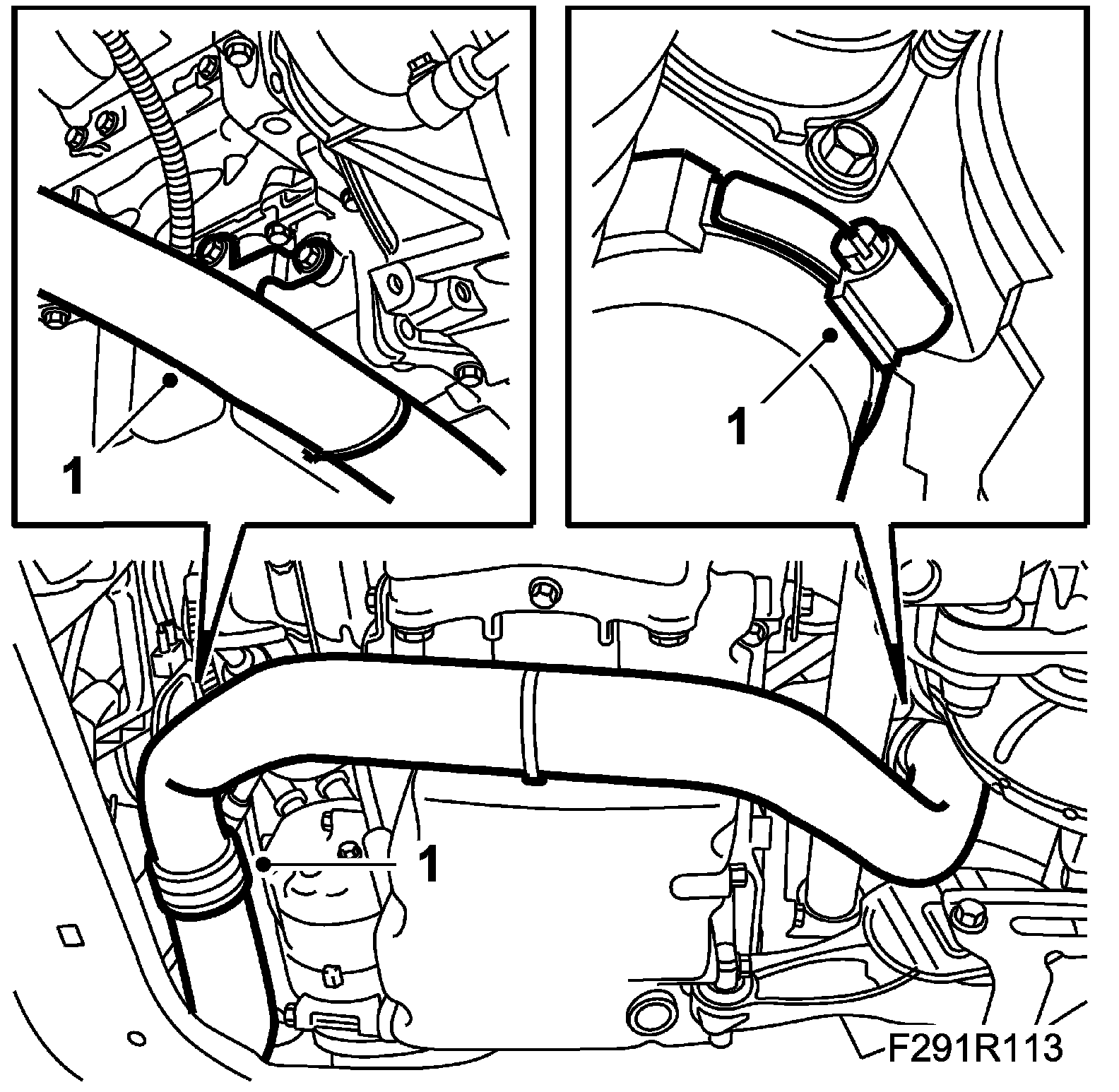 IMPORTANT: To reduce the risk of hoses mounted on the delivery side of the turbocharger coming loose due to low friction at high air pressure, the hoses and connecting pieces must be cleaned thoroughly before fitting. Use a rag dampened with 93 160 907 Motip Dupli cleaning agent to wipe clean inside the ends of the hoses. Clean the connecting pieces as well. If hose clips are rusty or damaged, they must be replaced so the correct clamping force is maintained.