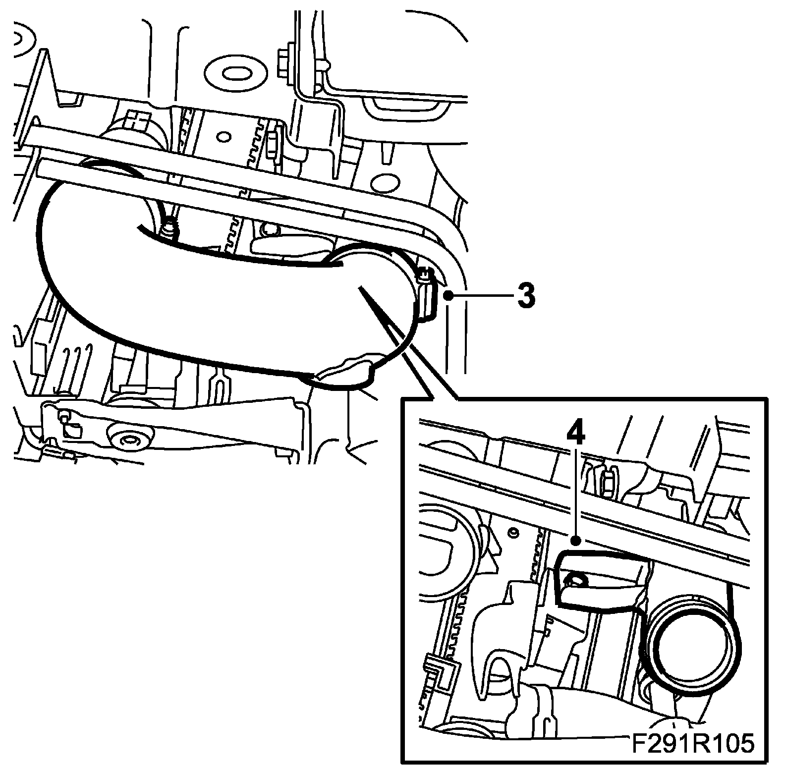3. Detach the hose clamp on the lower junction hose from the charge air pipe.