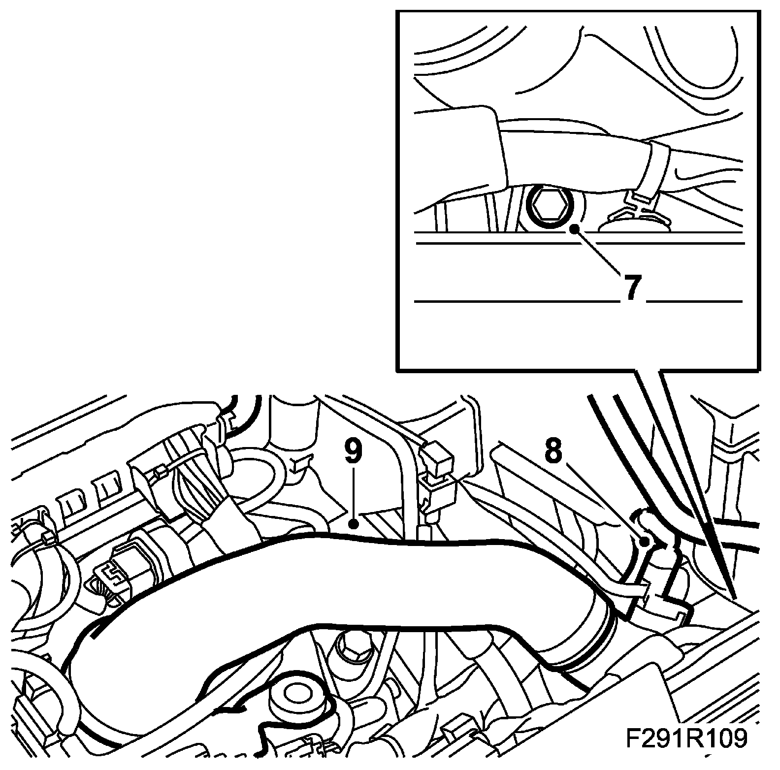 1. Position the delivery pipe. Insert the bolts for the charge air pipe upper bracket.