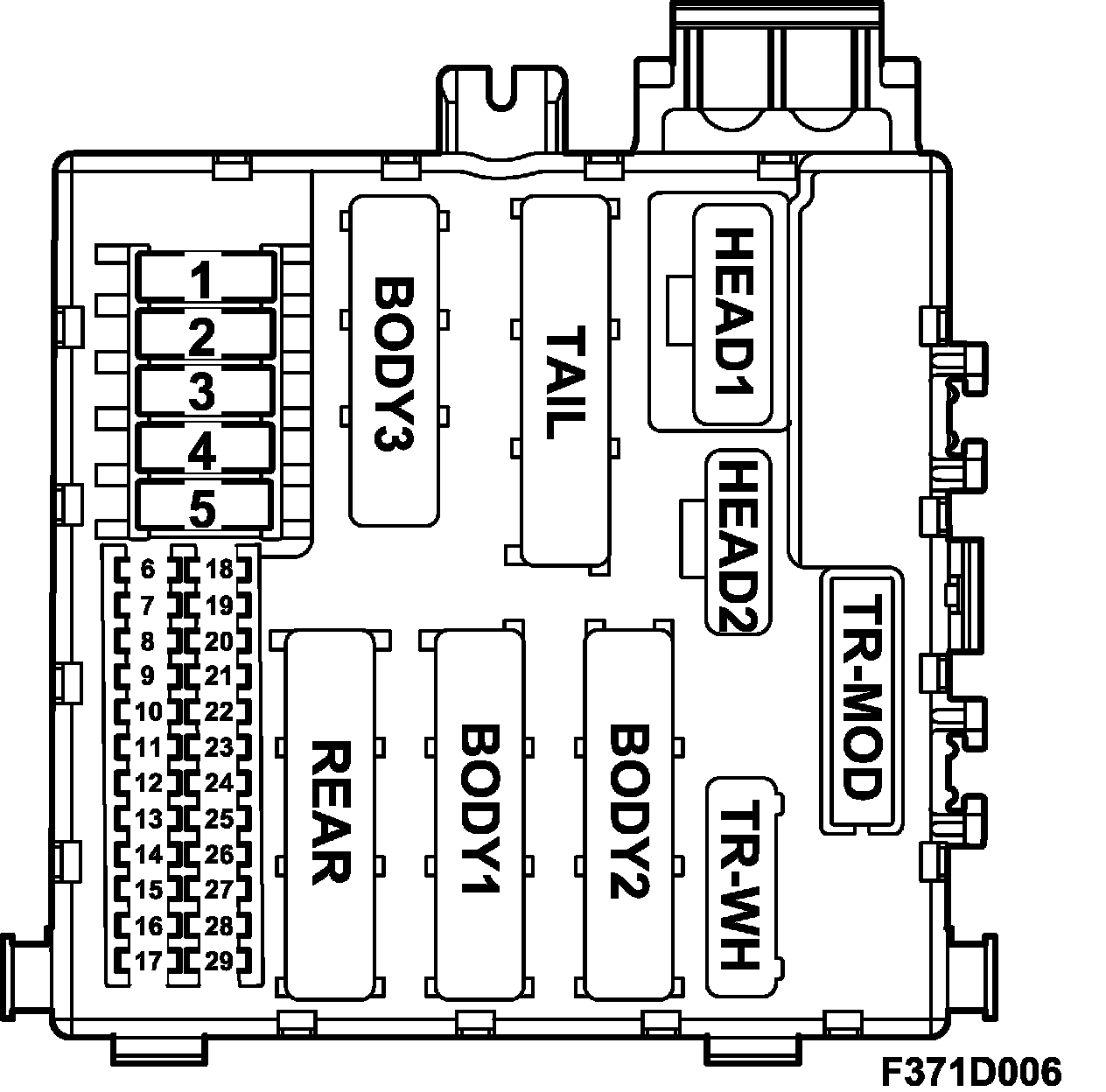 6. Rear (in diagram = R) to rear wiring harness