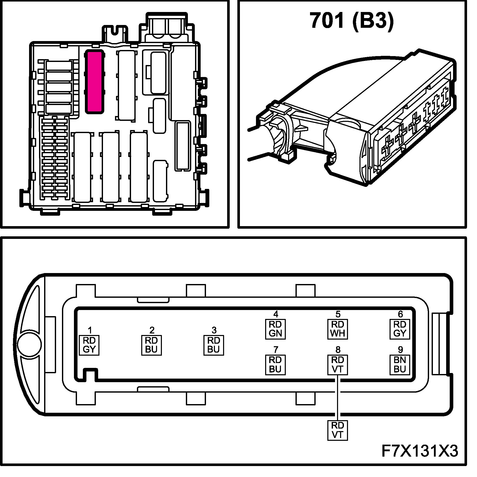 3. Body 3 (in diagram = B3) to main wiring harness