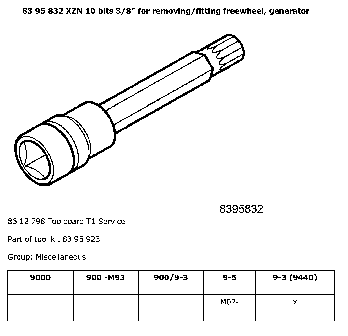 83 95 832 XZN 10 Bits 3/8" For Removing/fitting Freewheel, Generator: