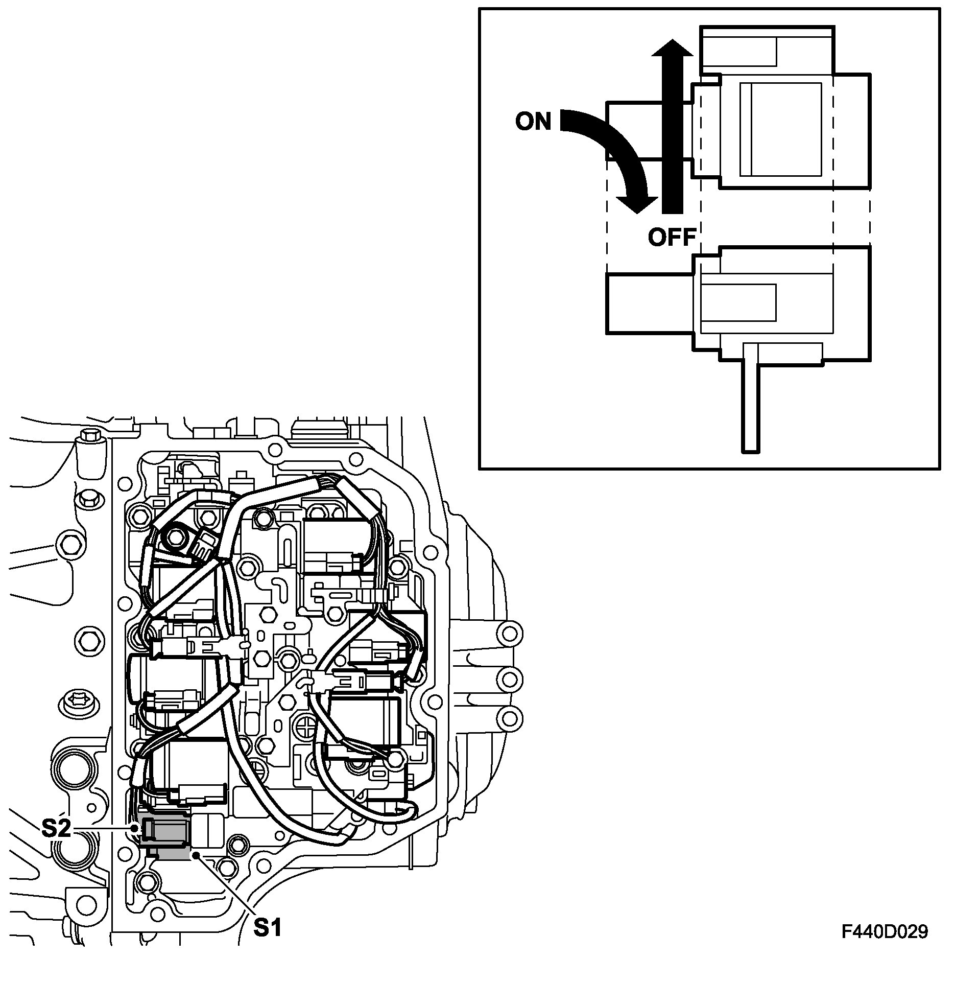 The control module activates the valve by applying B+ to it. The valve is powered from control module pin 2 in the connector in direct contact with the gearbox on the bottom of the control module. The valve is grounded in the valve housing.