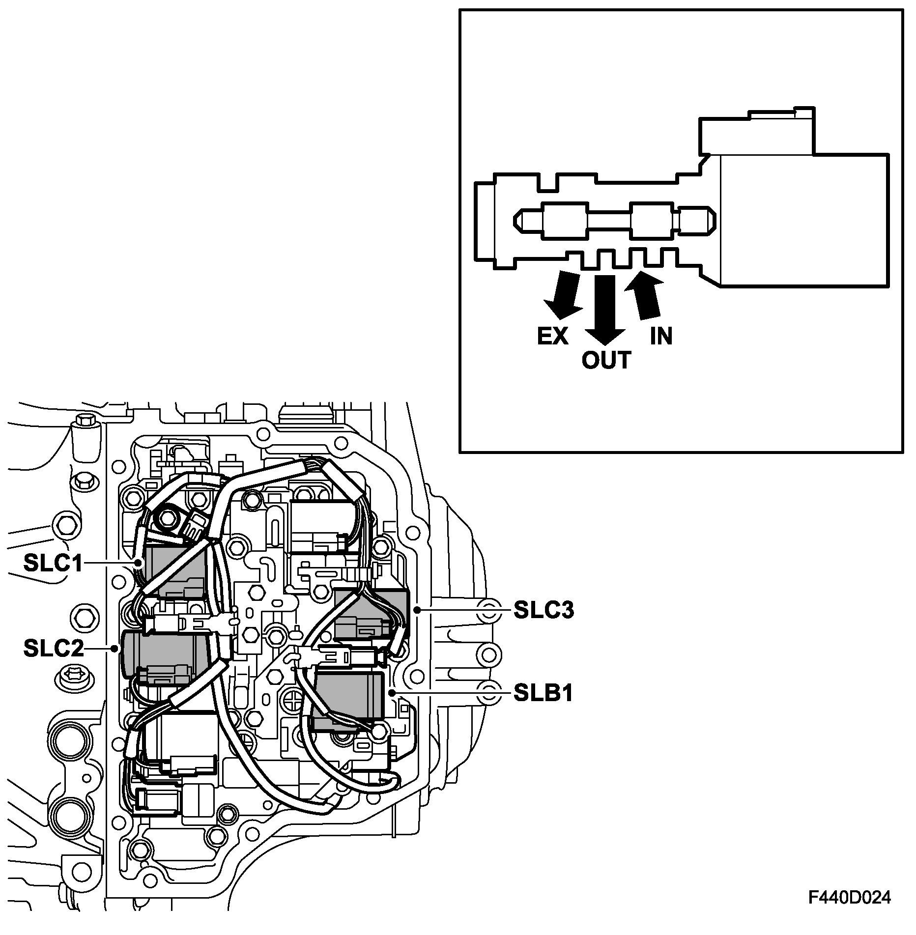 The valve controls the pressure in clutch C1. The valve is active in gear positions P, R, N, D (gears 5 and 6).