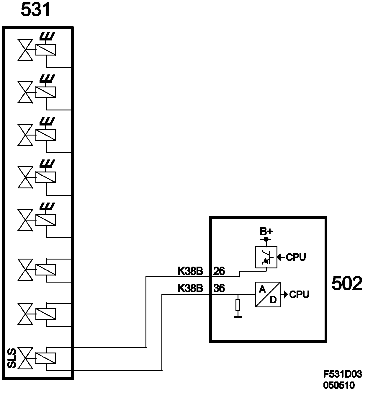 The solenoid is governed from pin 26 (B) on TCM using a 300Hz PWM voltage. Grounding takes place on pin 36 (B) on TCM. The current varies between 0-1000 mA. The solenoid is open when current is not applied. 0A = high oil pressure 1000mA = low oil pressure.
