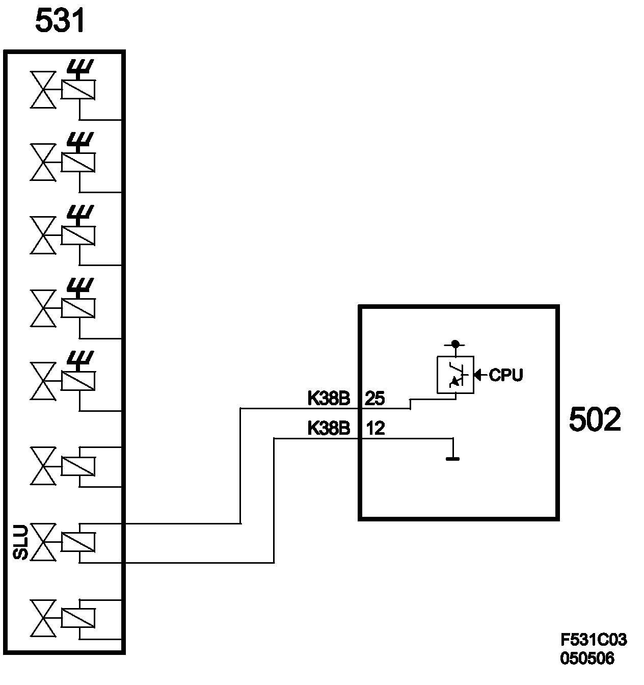 The solenoid is governed from pin 25 (B) on TCM using a 300Hz PWM signal. Grounding takes place on pin 12 (B) on TCM. The current varies between 0-1000 mA. The solenoid is closed when current is not applied. 0A = low oil pressure 1000mA = high oil pressure.
