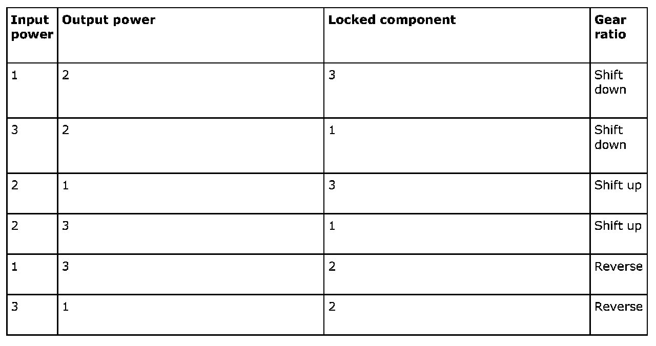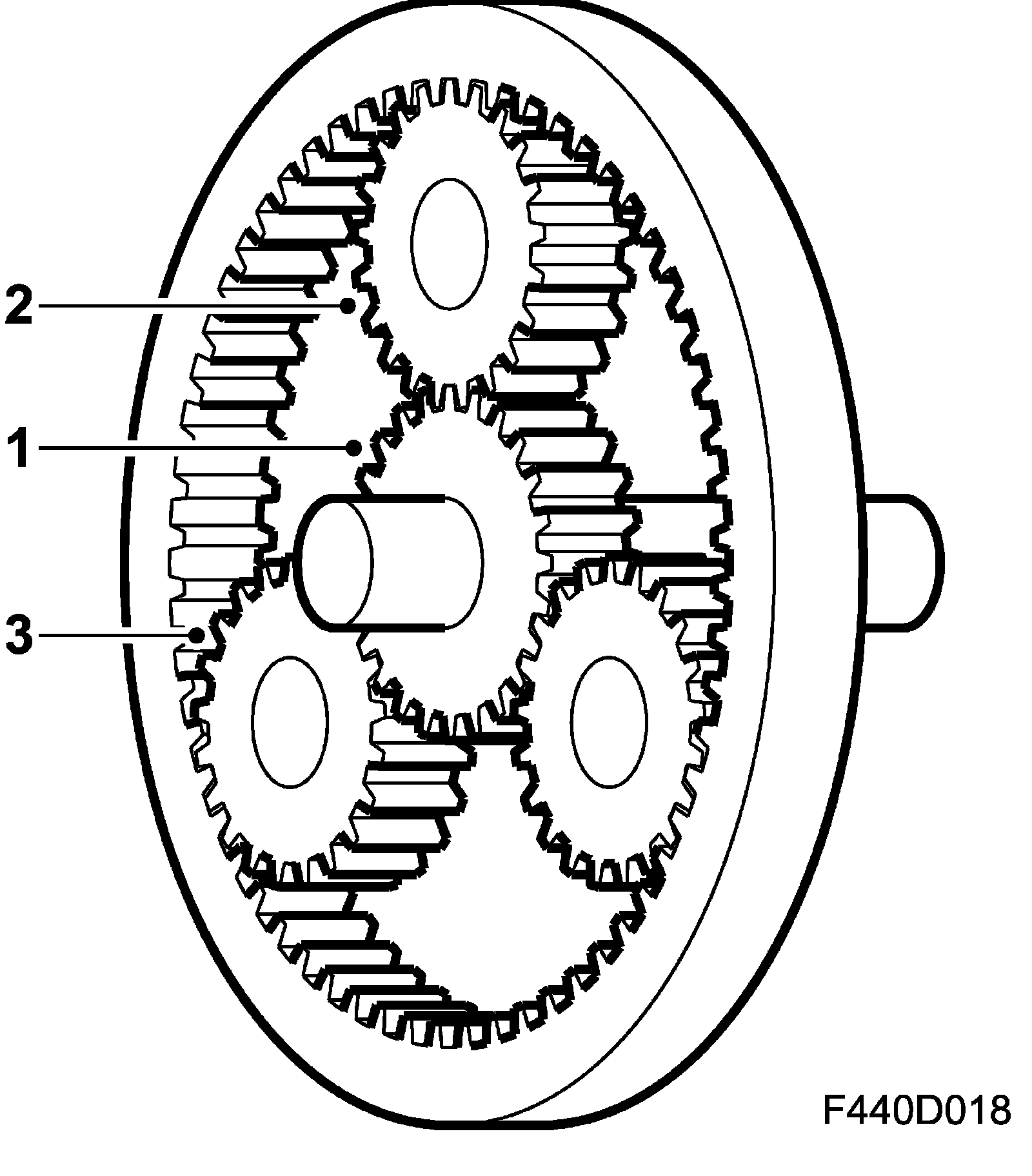 To obtain the different gear ratios, the component parts of the planetary gears, such as the sun wheel, planet wheel, ring wheel and planet carrier are locked or released respectively. The friction elements for this are all disc type except for brake B4 which is band type. As there are four different planetary gears, it is possible to obtain a wide range of different ratios.