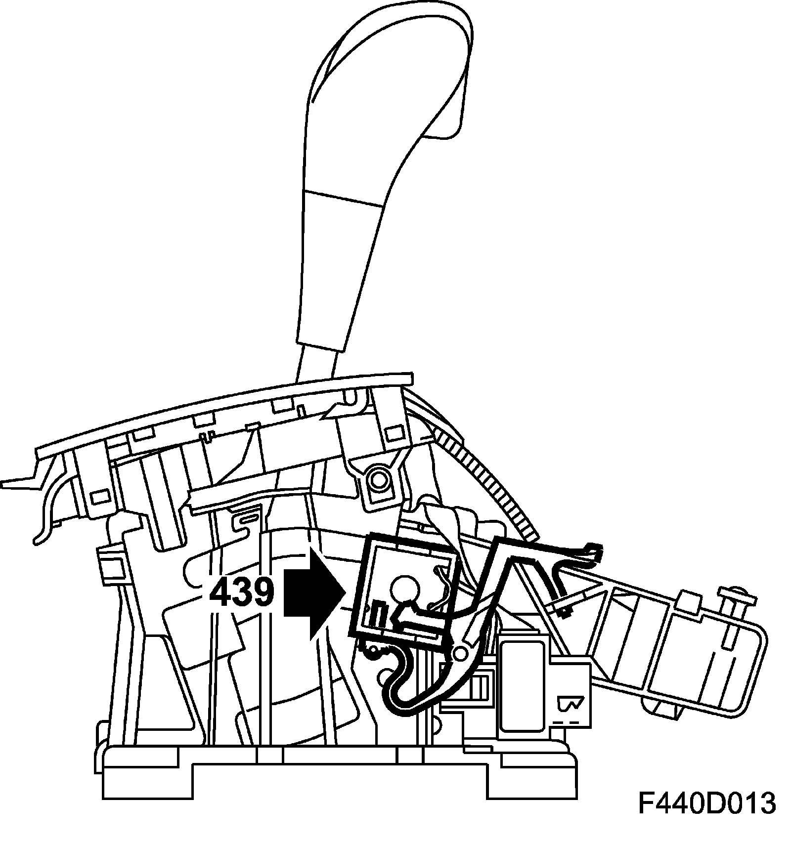 The solenoid is controlled by the Shift lever module (726). The selector lever can be released manually via the solenoid if there is an electrical fault.