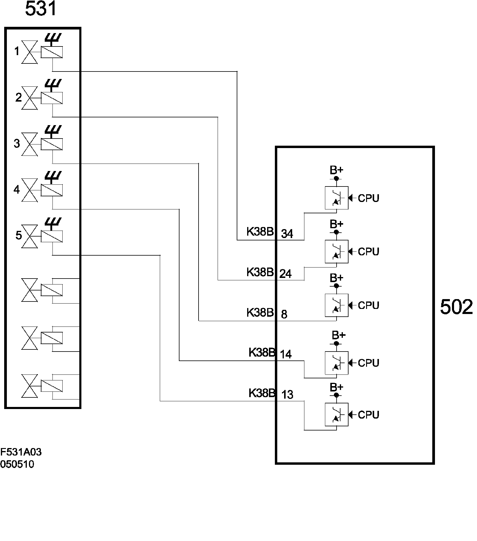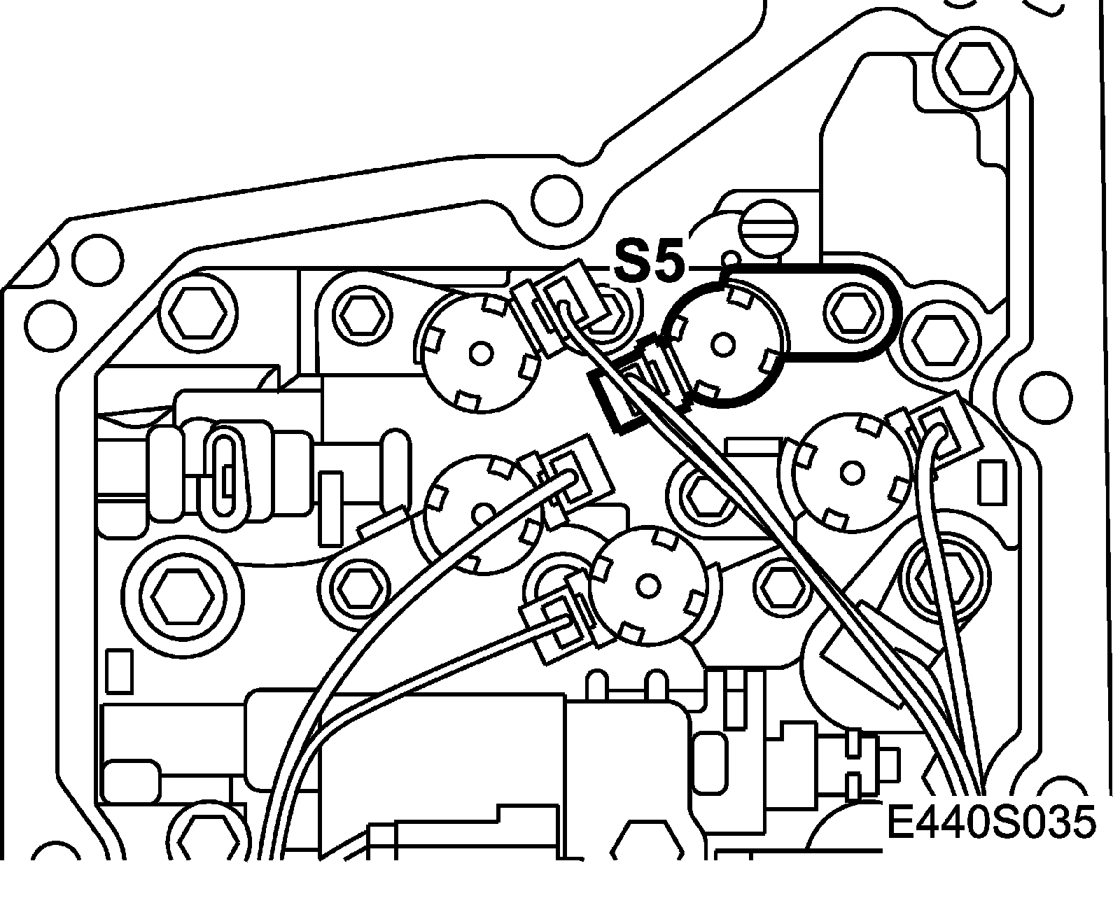 S5 is supplied from pin 13 (B). The solenoid is hydraulically closed when no current is applied.
