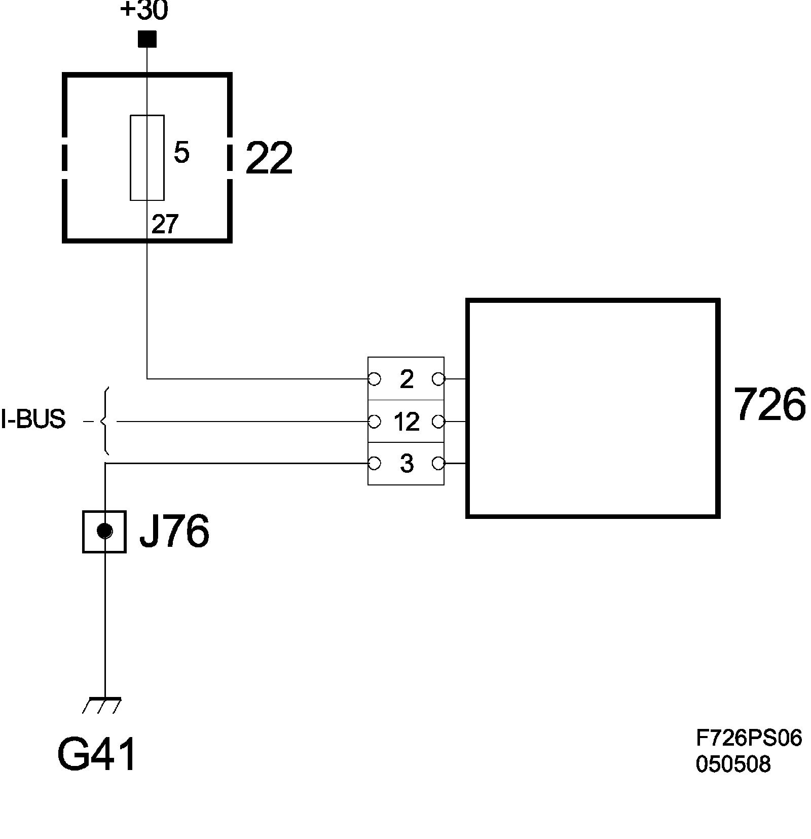 The SLM control module is powered with +30 on pin 2 from the electrical center 22, fuse 5. Grounding is done on pin 3, grounding point G41. Bus communication (I-bus) takes place on pin 12.