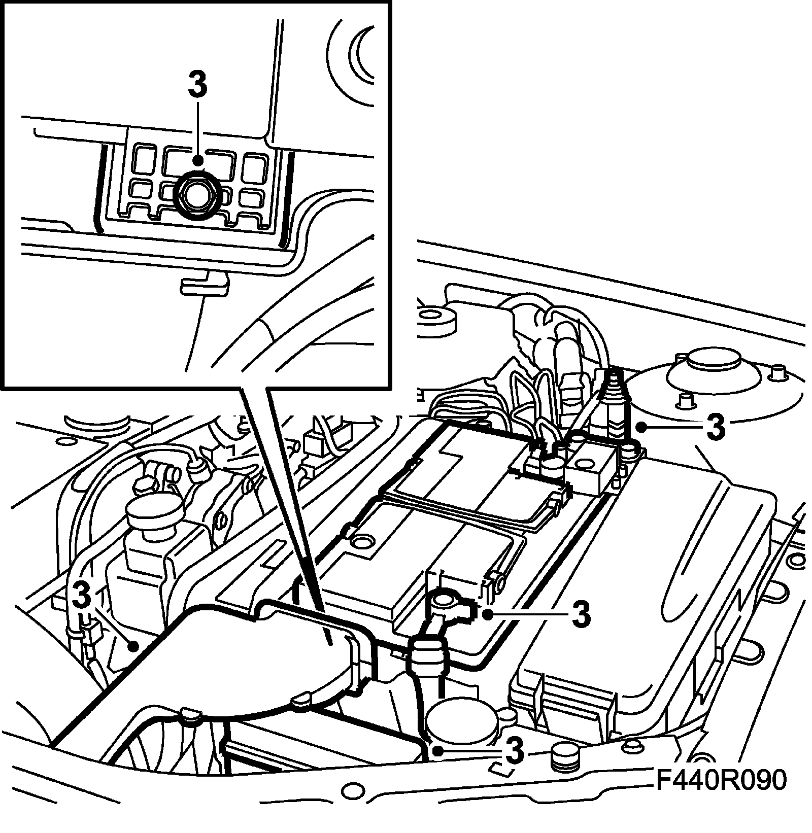 3. Remove the battery, coolant pipe, main fuse box and bonnet switch.