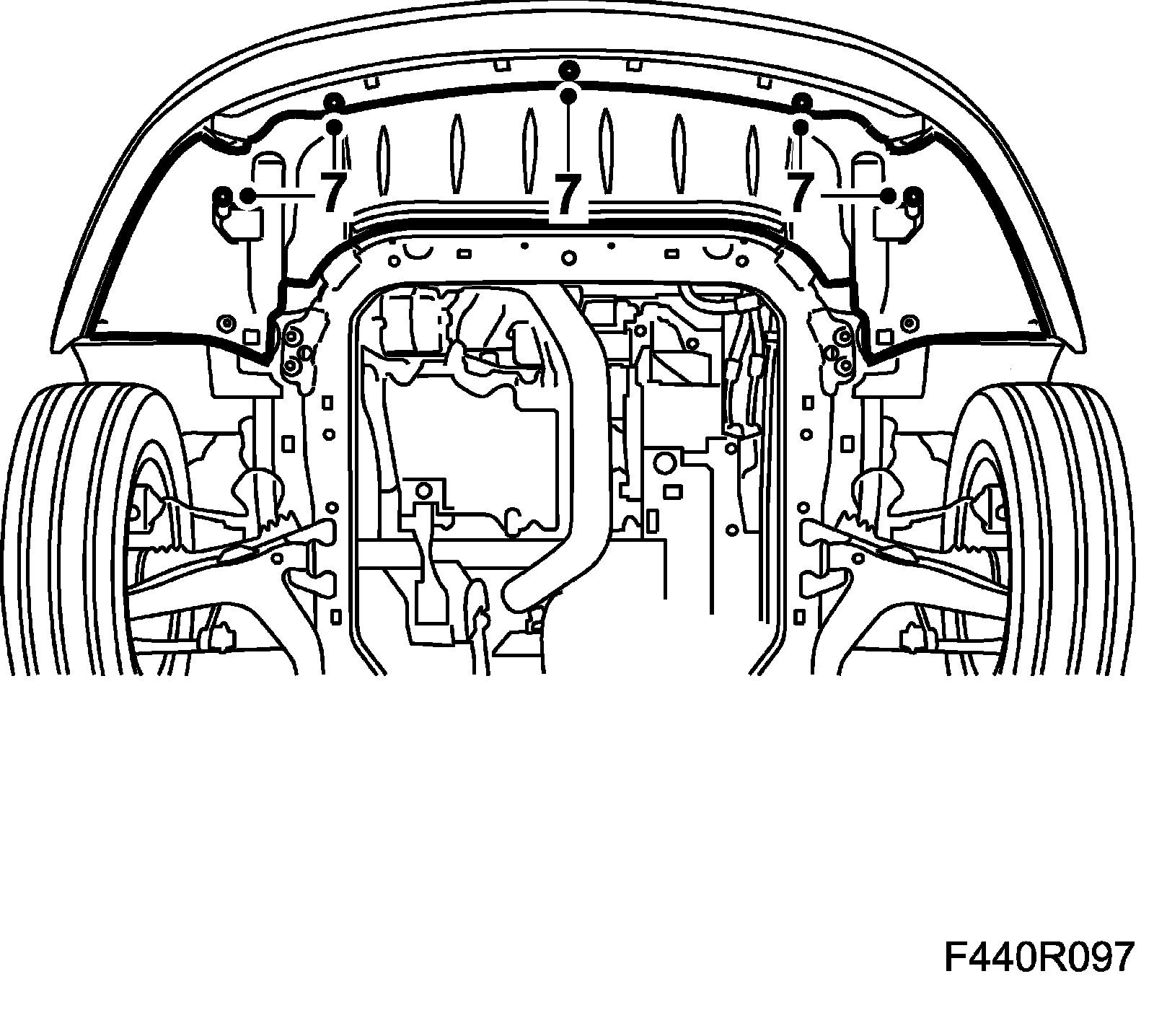 7. Fit the spoiler shield. CV: Fit Chassis reinforcement, front subframe, CV