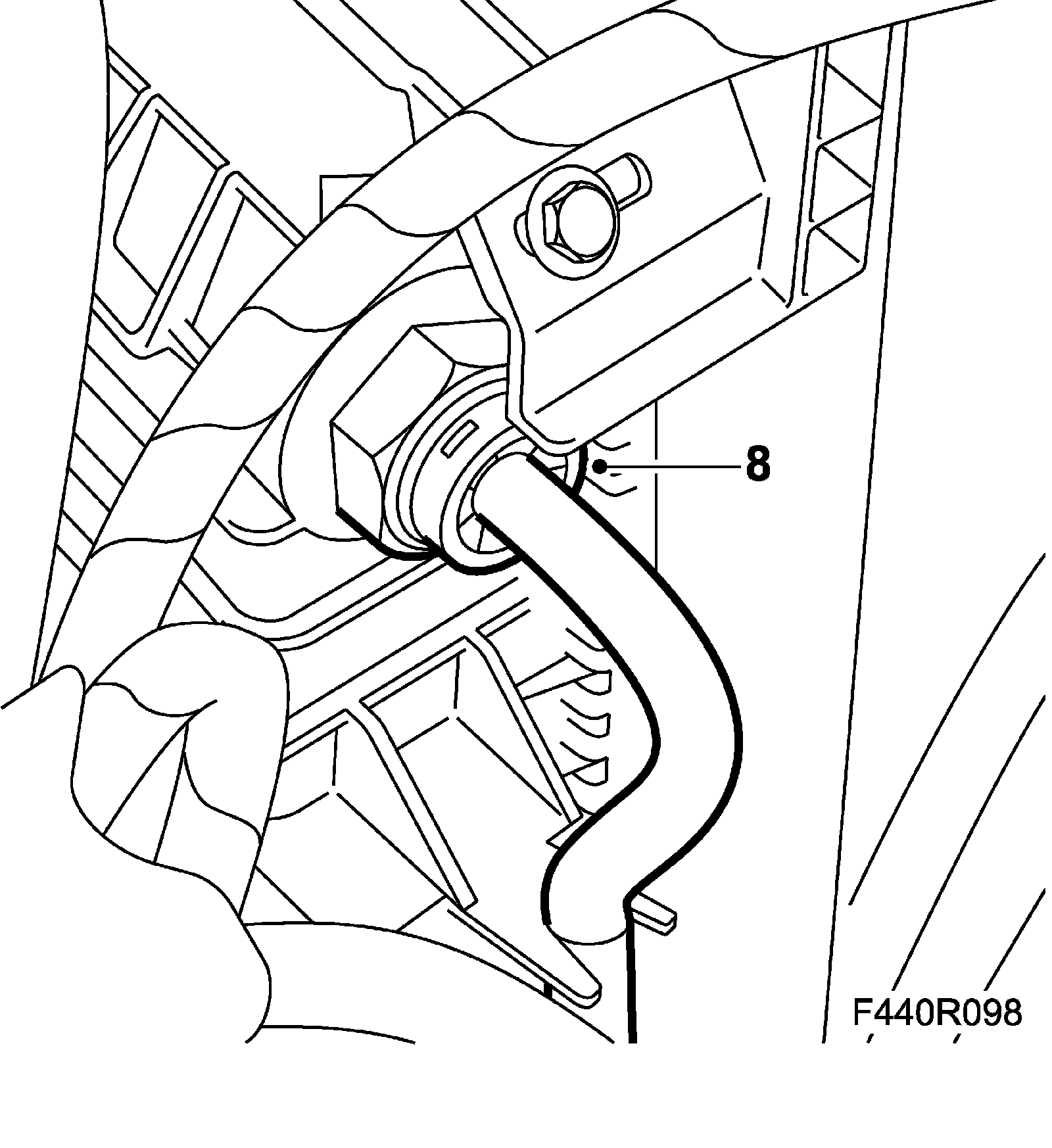 8. Lower the car and fit the upper hose to the holder and the oil cooler. Press until the pipe snaps into position. Press on the dust protector.