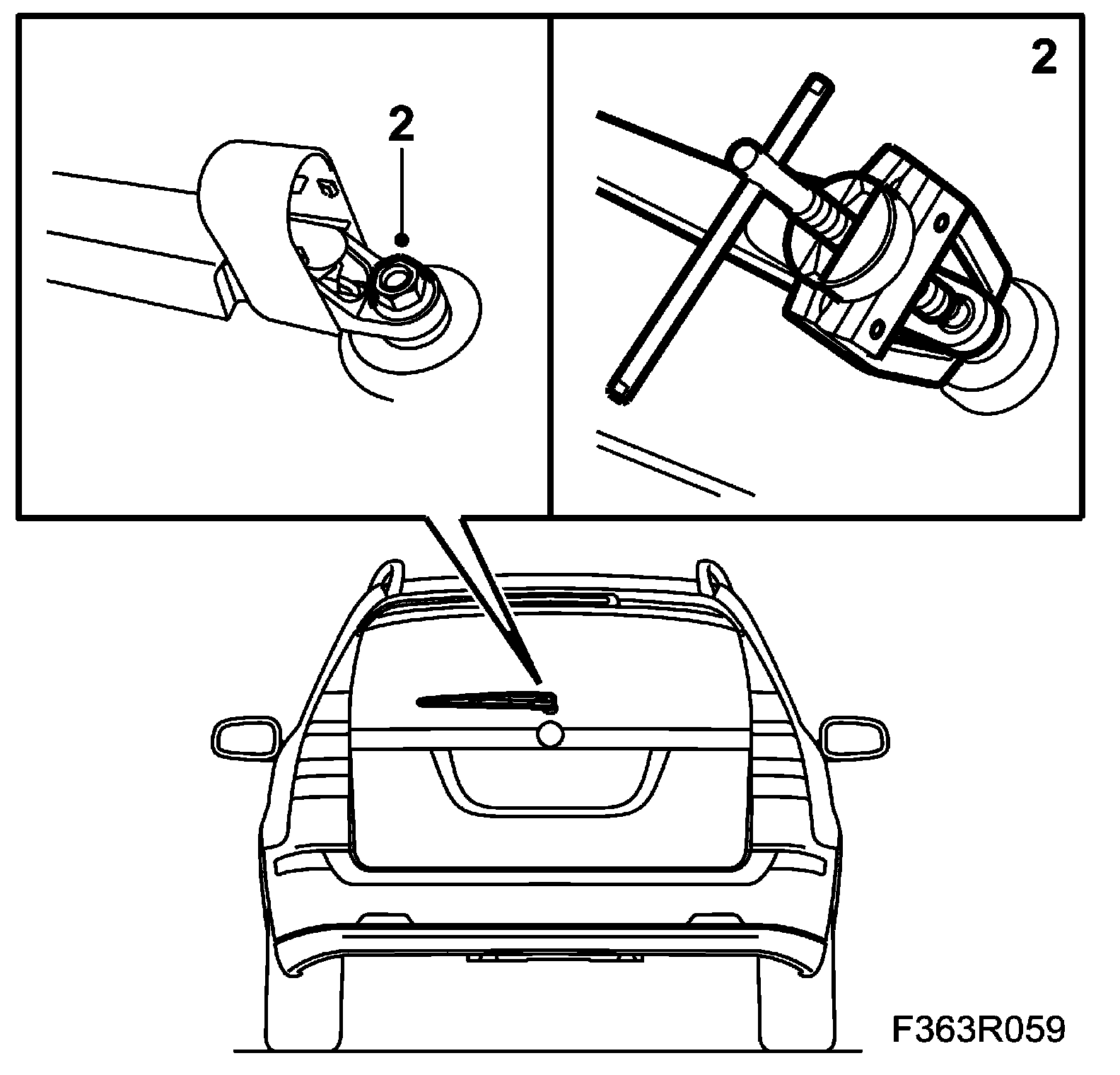 2. Remove the wiper arm. Use 85 80 144 Puller, windscreen wiper arm.