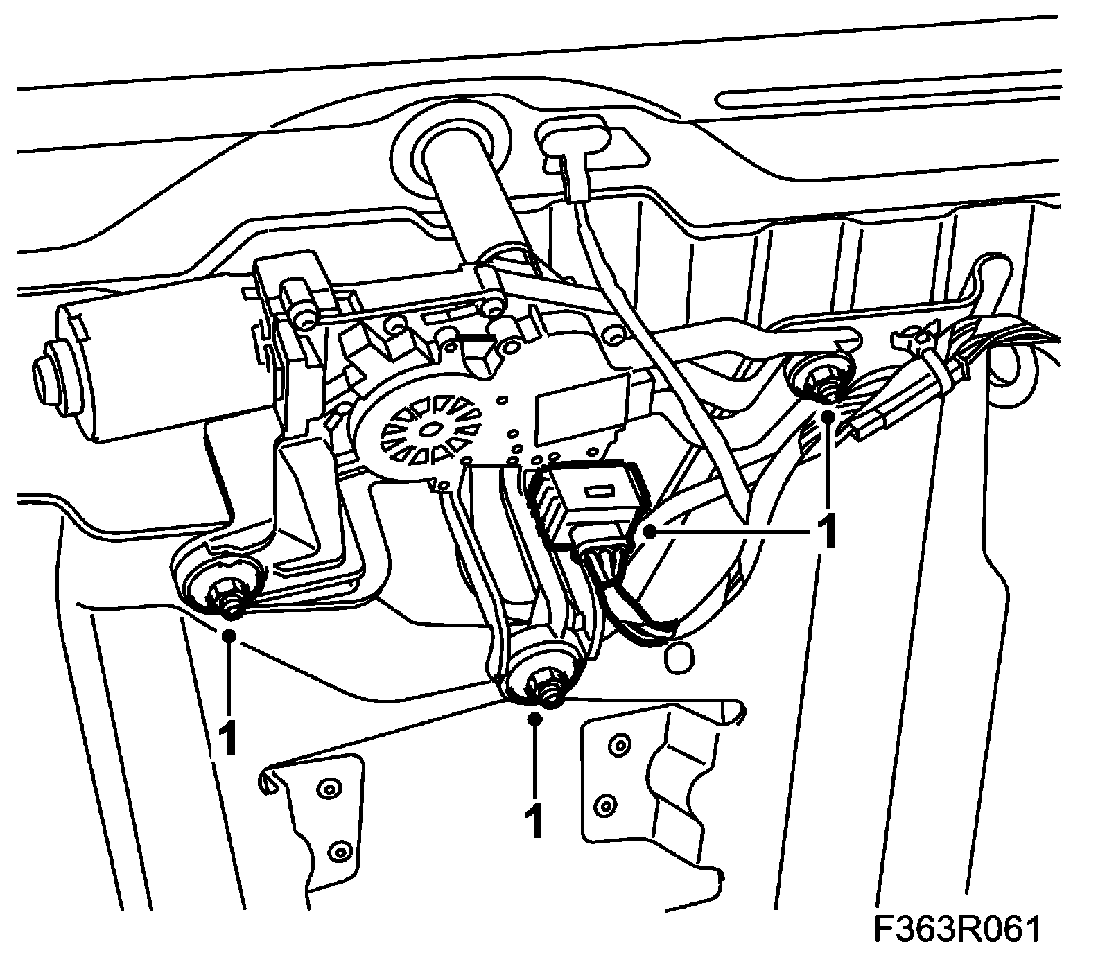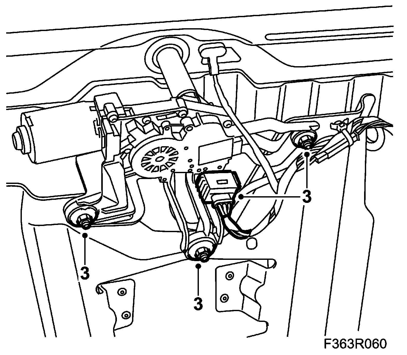 1. Put in place the wiper motor. Fit the wiper motor bolts and plug in the connector.