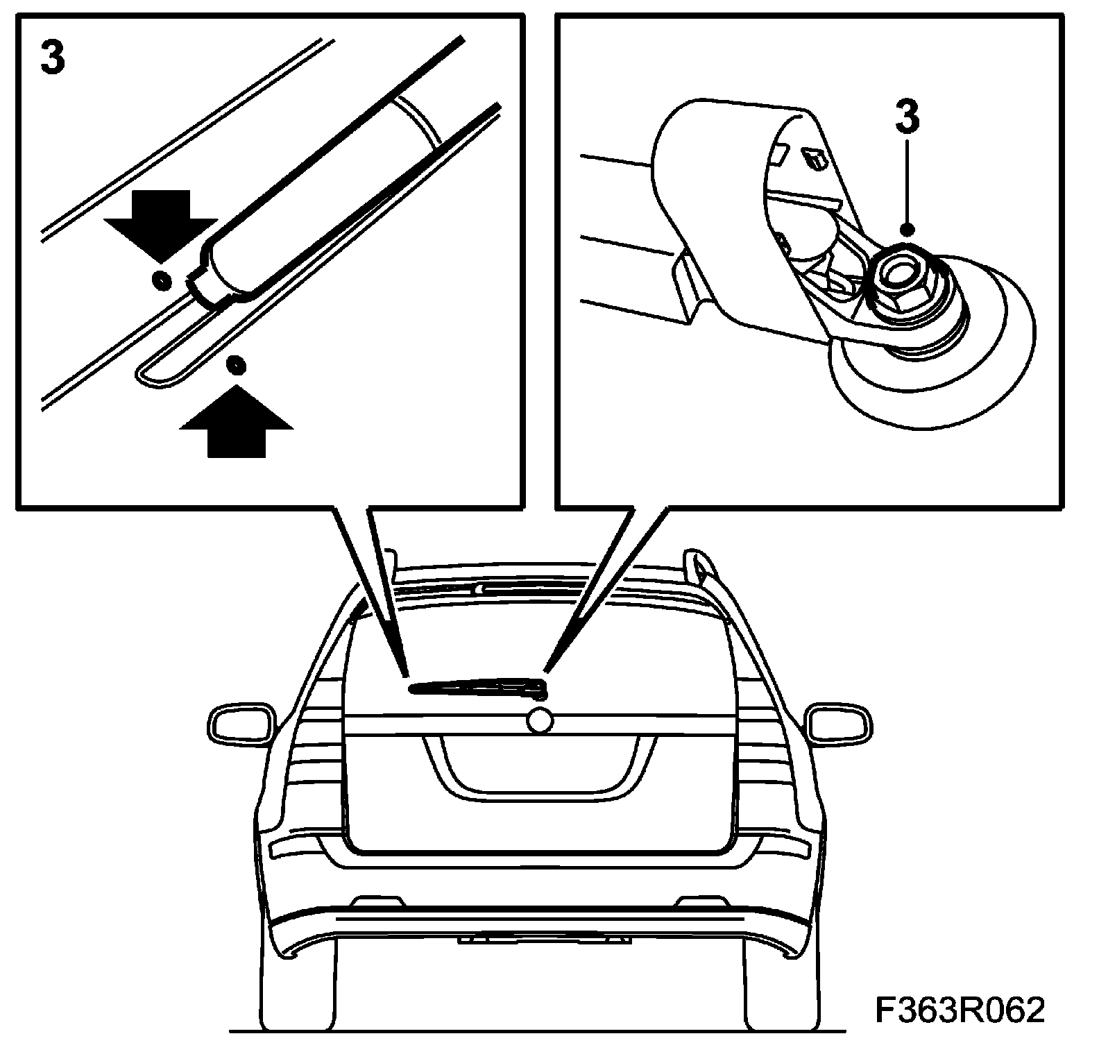 3. Fit the wiper arm. The wiper blade must lie between the markings on the rear window.