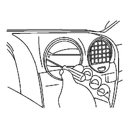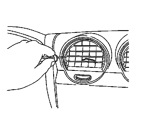 1. Using a flat-bladed tool, release the left housing retaining pin and gently push the left side of the air outlet into the housing assembly.