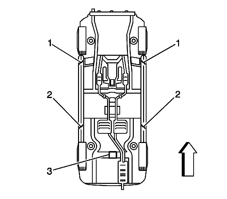 Caution: To avoid any vehicle damage, serious personal injury or death when major components are removed from the vehicle and the vehicle is supported by a hoist, support the vehicle with jack stands at the opposite end from which the components are being removed and strap the vehicle to the hoist.