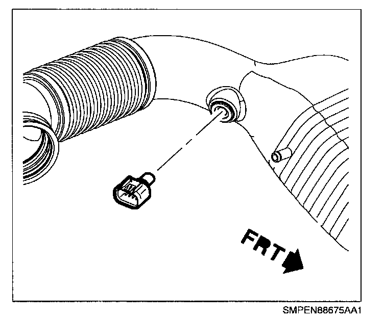 2. Connect IAT sensor harness connector. Push in connector until a click is heard, then pull back to confirm a positive engagement.