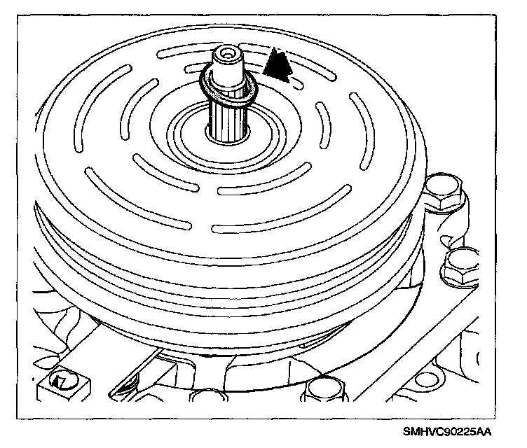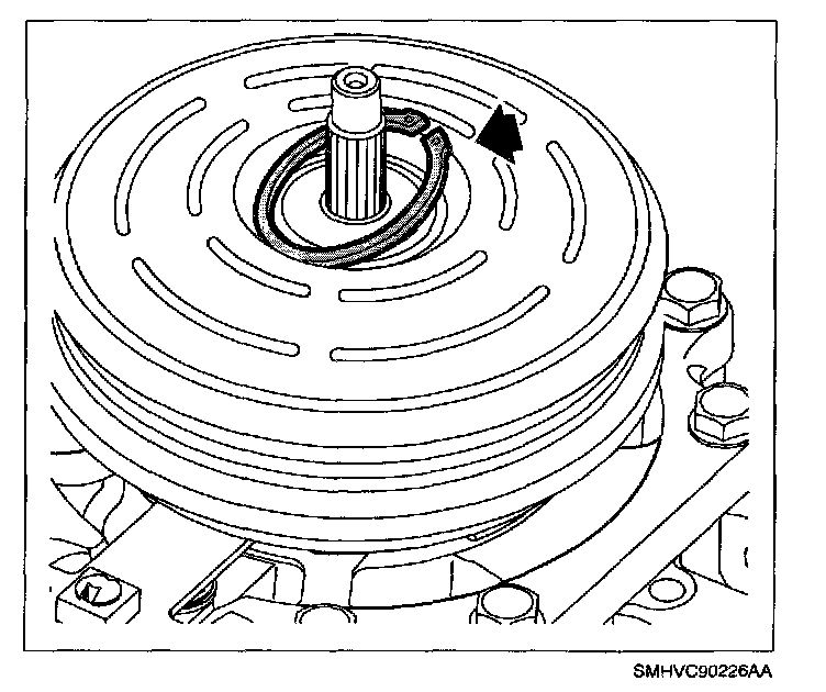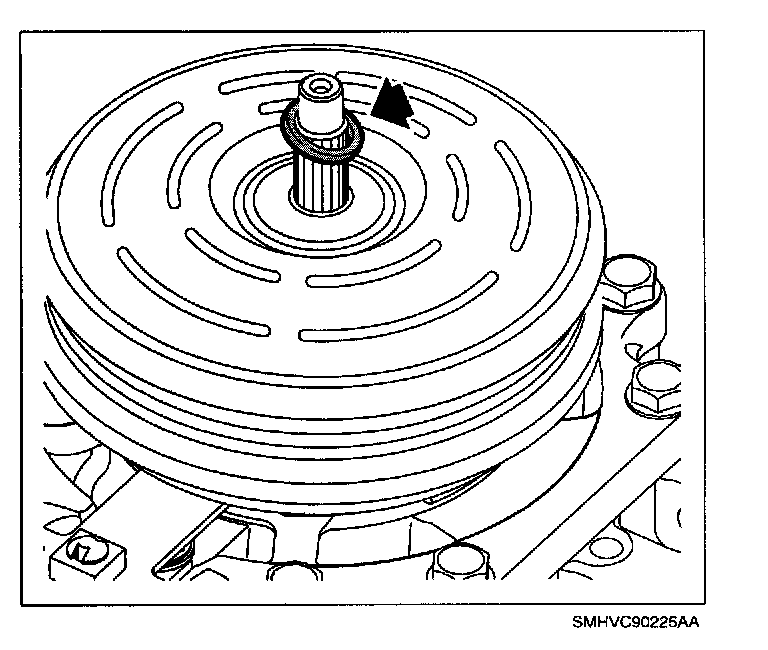 IMPORTANT: The A/C clutch bearing and pulley is a slip fit on the compressor. If correctly aligned it should slip on easily. If difficulty is encountered, install using pulley replacer tool.