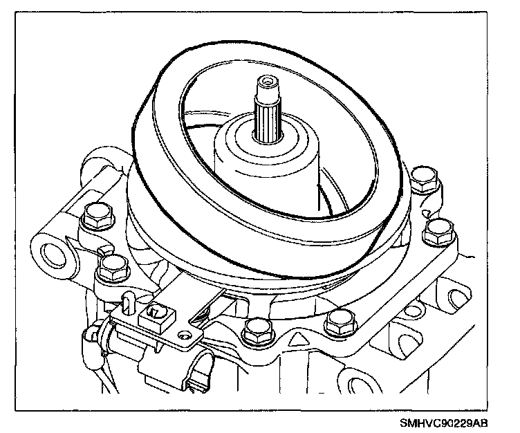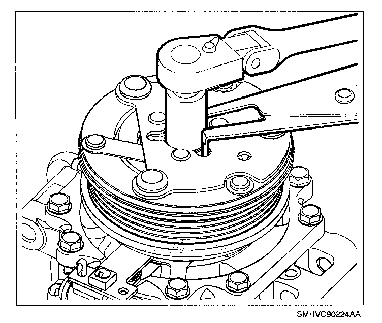 5. Using Puller, Three Jaw J 25031-A if necessary, remove the A/C Clutch Pulley.