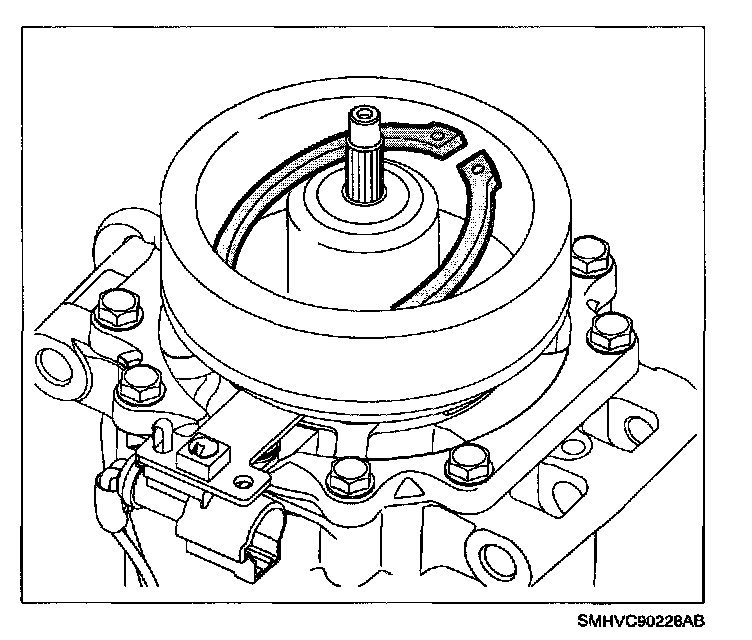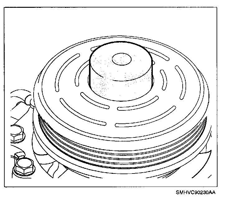 1. Clean A/C clutch field coil and pulley mounting surfaces.