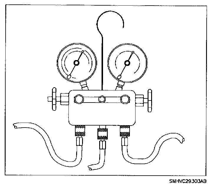 1. Close both hand valves of manifold gauge set.