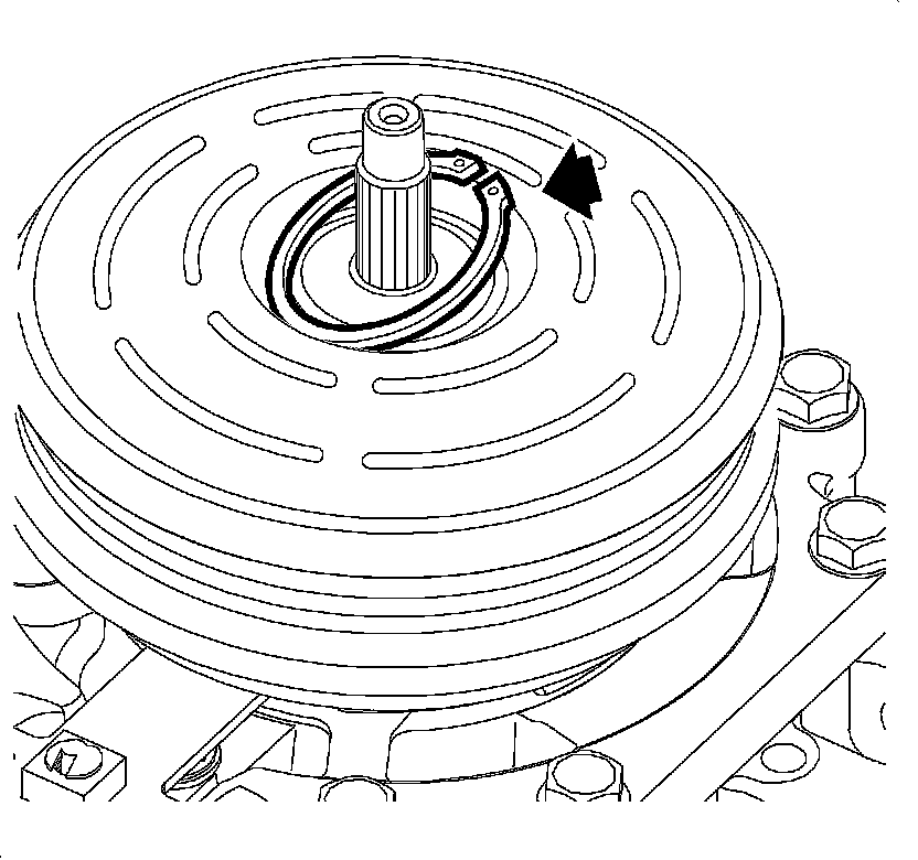 IMPORTANT: The A/C clutch bearing and pulley is a slip fit on the compressor. If correctly aligned the pulley should slip on easily. If difficulty is encountered, install using the pulley installer tool.