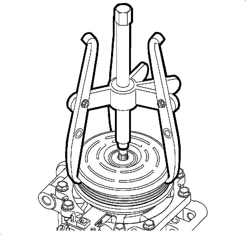 5. Use J 25031-A to remove the A/C clutch pulley.