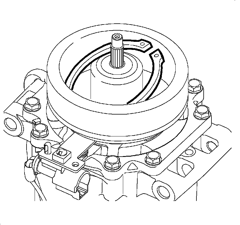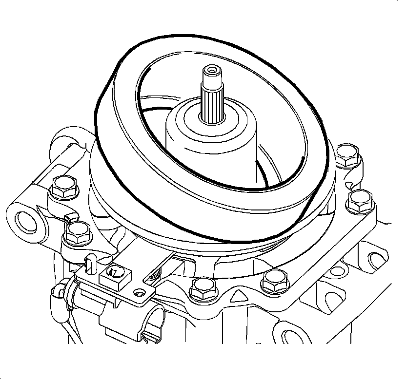 12. Using a feeler gauge, measure the clearance between the pulley and the drive plate.