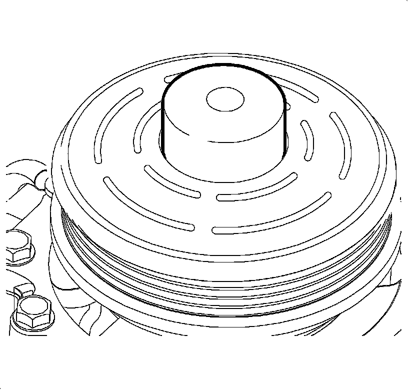 8. Use J 45504 to align the clutch bearing/pulley assembly over the hub. Gently tap on the assembly to install.