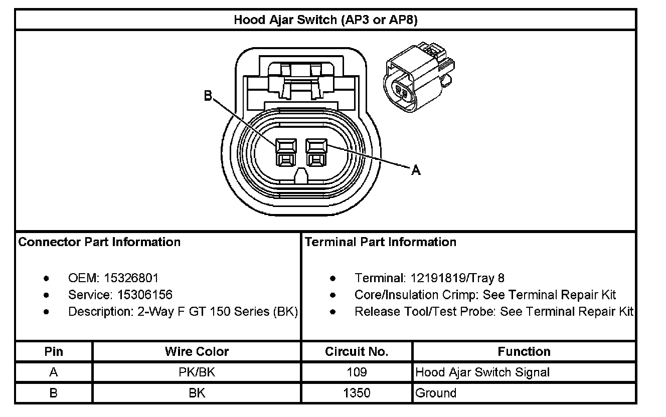 Hood Ajar Switch (With RPO Code AP3 Or AP8):