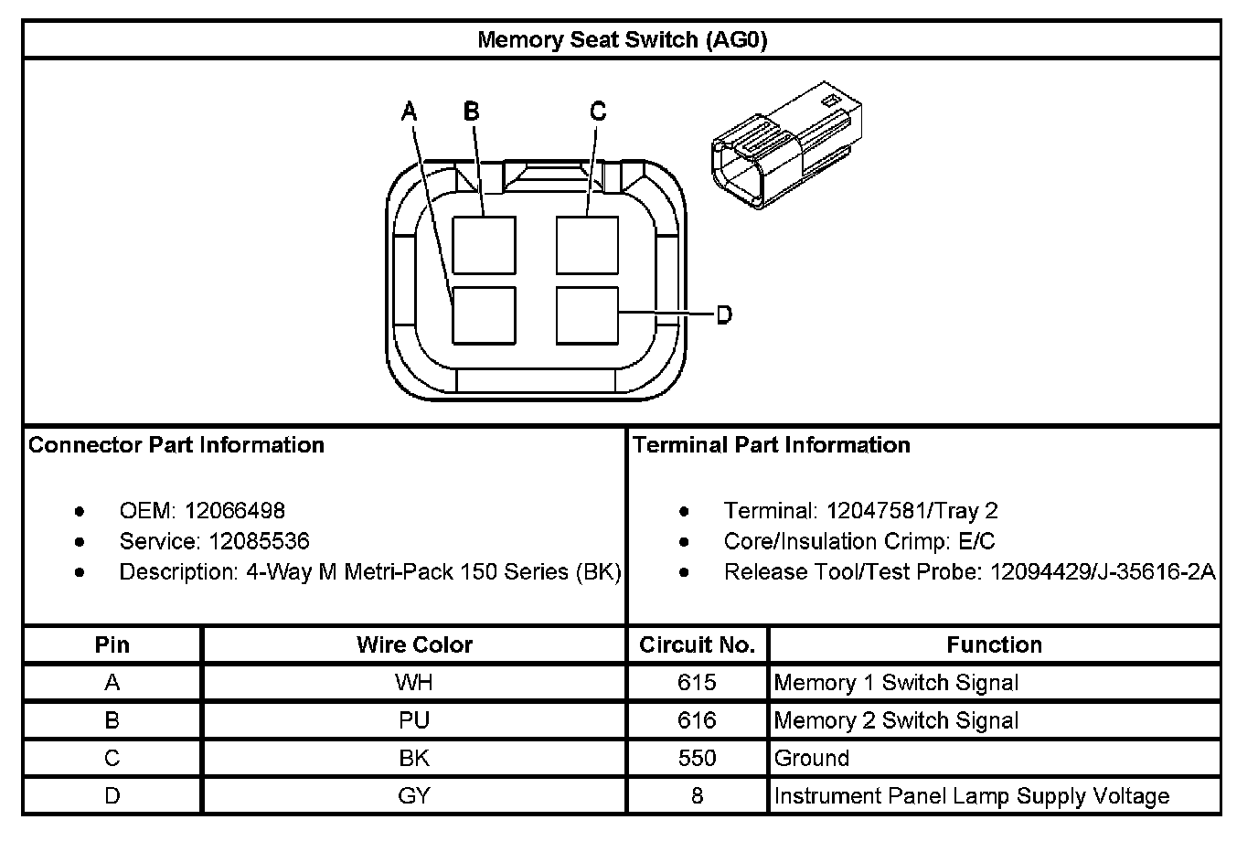 Memory Seat Switch (With RPO Code AG0):