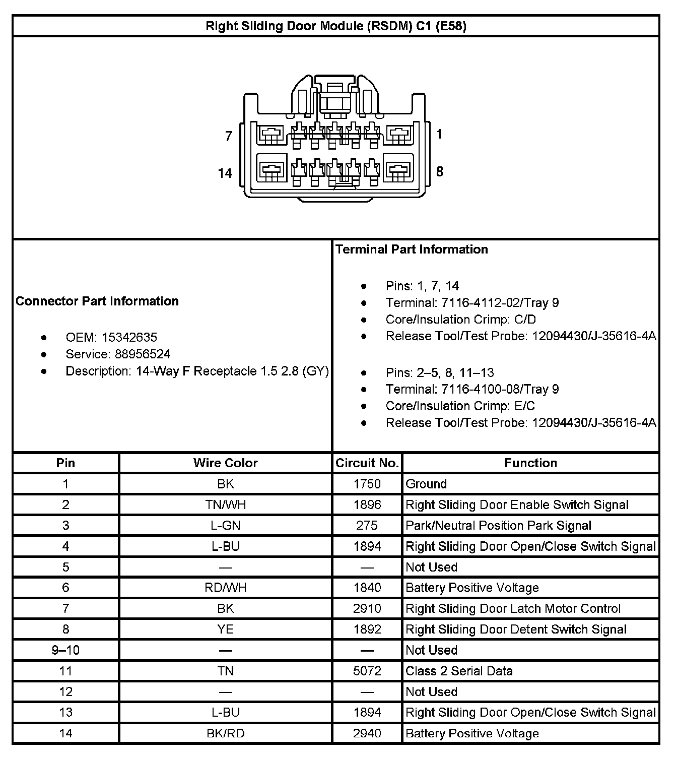 Right Sliding Door Module (RSDM) C1 (With RPO Code E58):