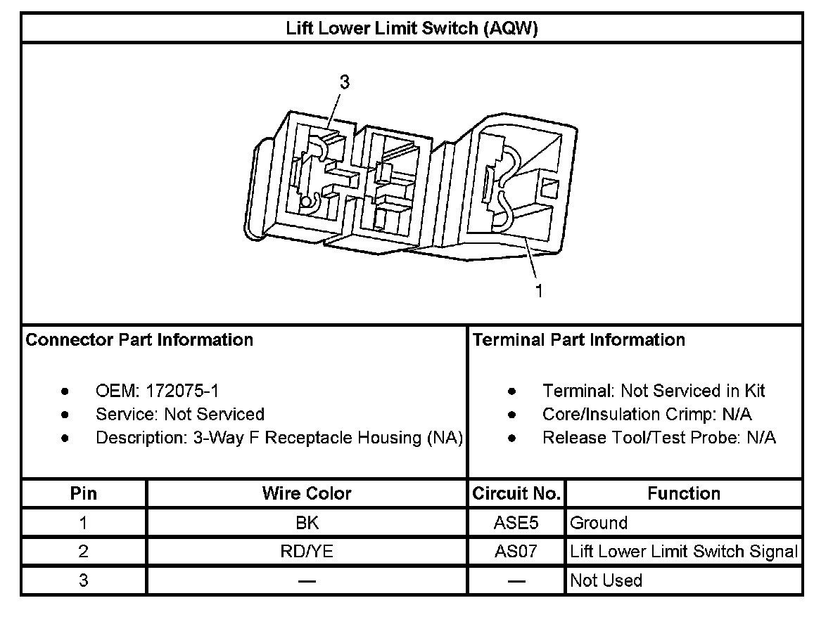 Lift Lower Limit Switch (With RPO Code AQW):