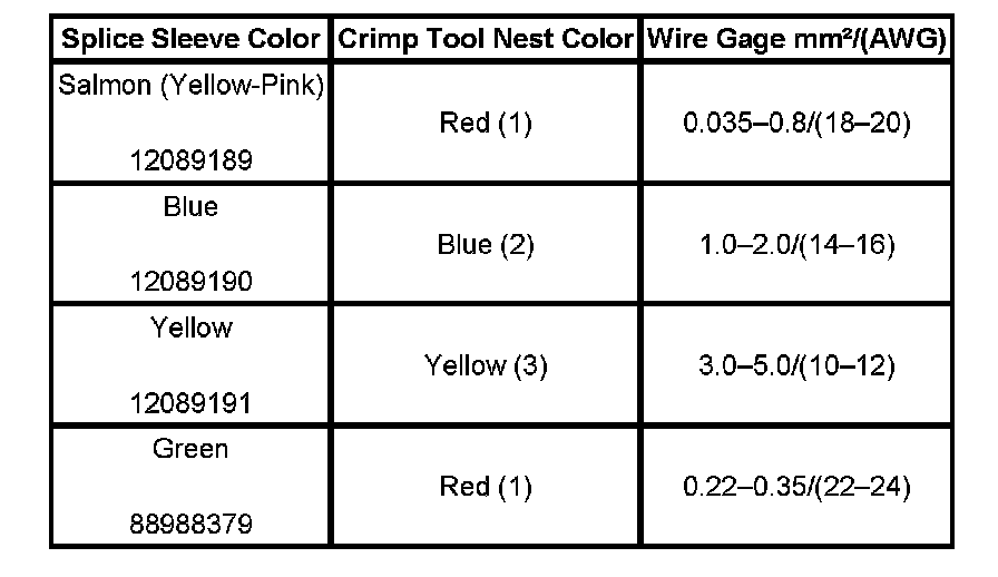 4. Select the proper DuraSeal splice sleeve according to the wire size. Refer to the above table at the beginning of the repair procedure for the color coding of the DuraSeal splice sleeves and the crimp tool nests.