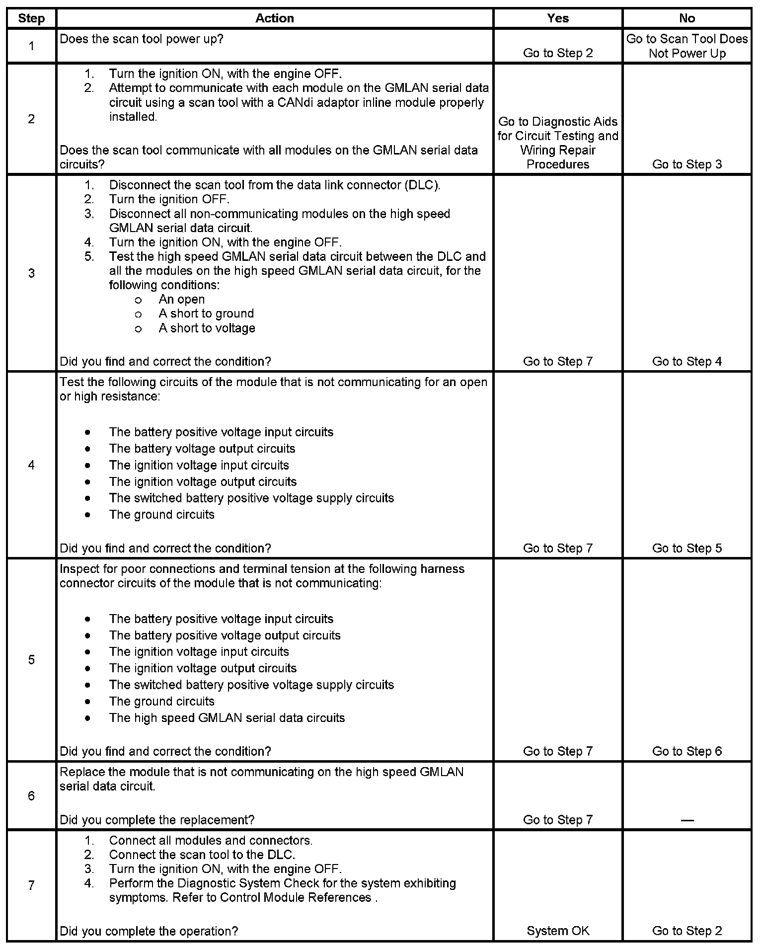 Scan Tool Does Not Communicate with High Speed GMLAN Device