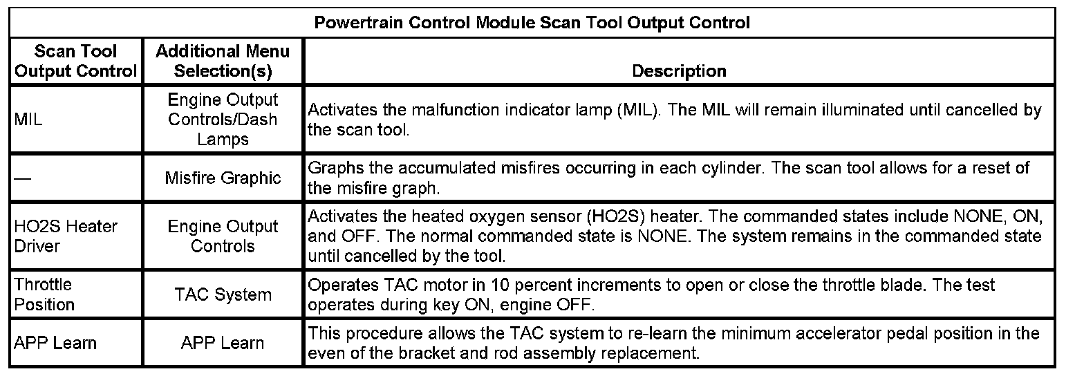 Scan Tool Output Controls