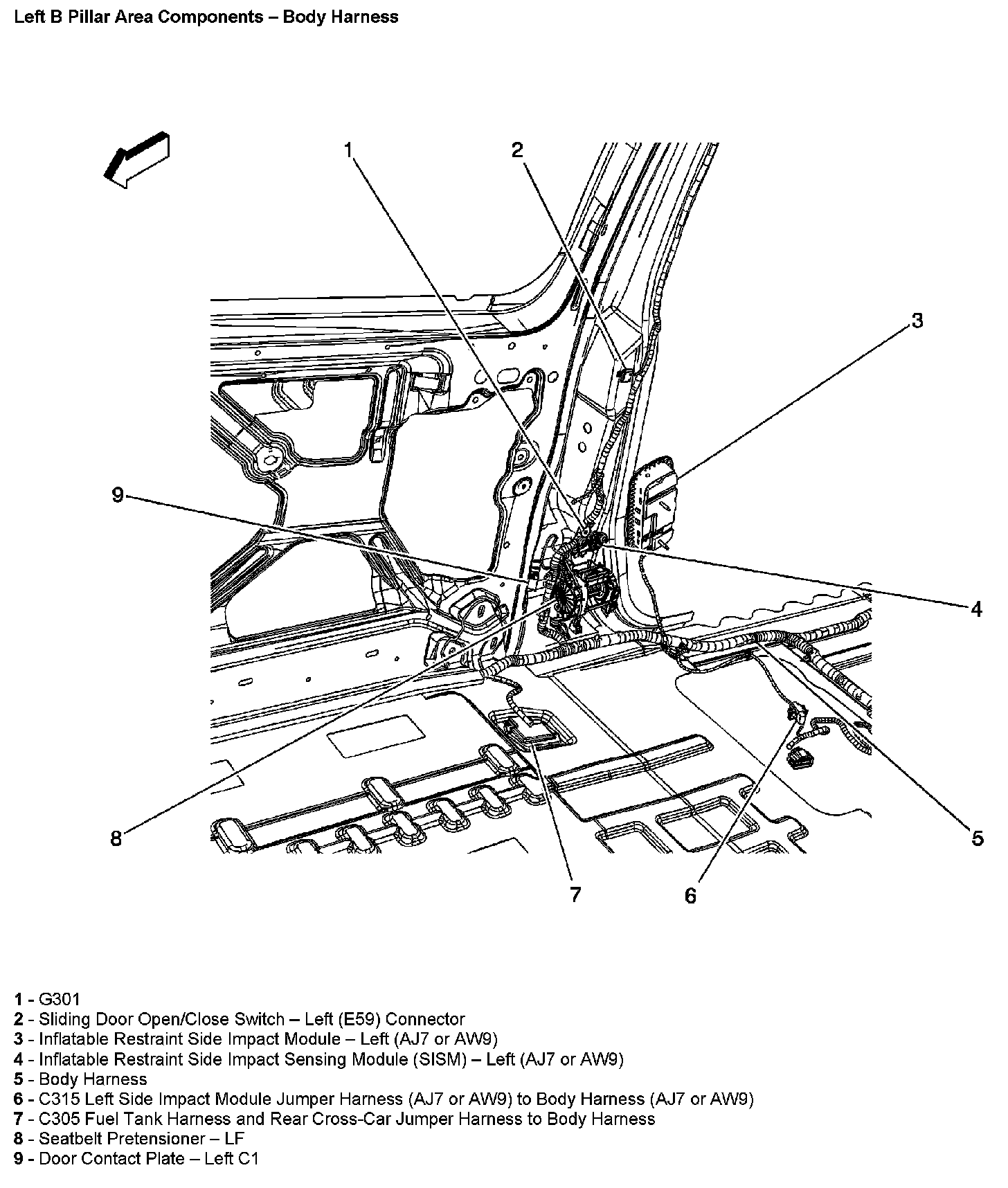 Left B Pillar Area Components - Body Harness: