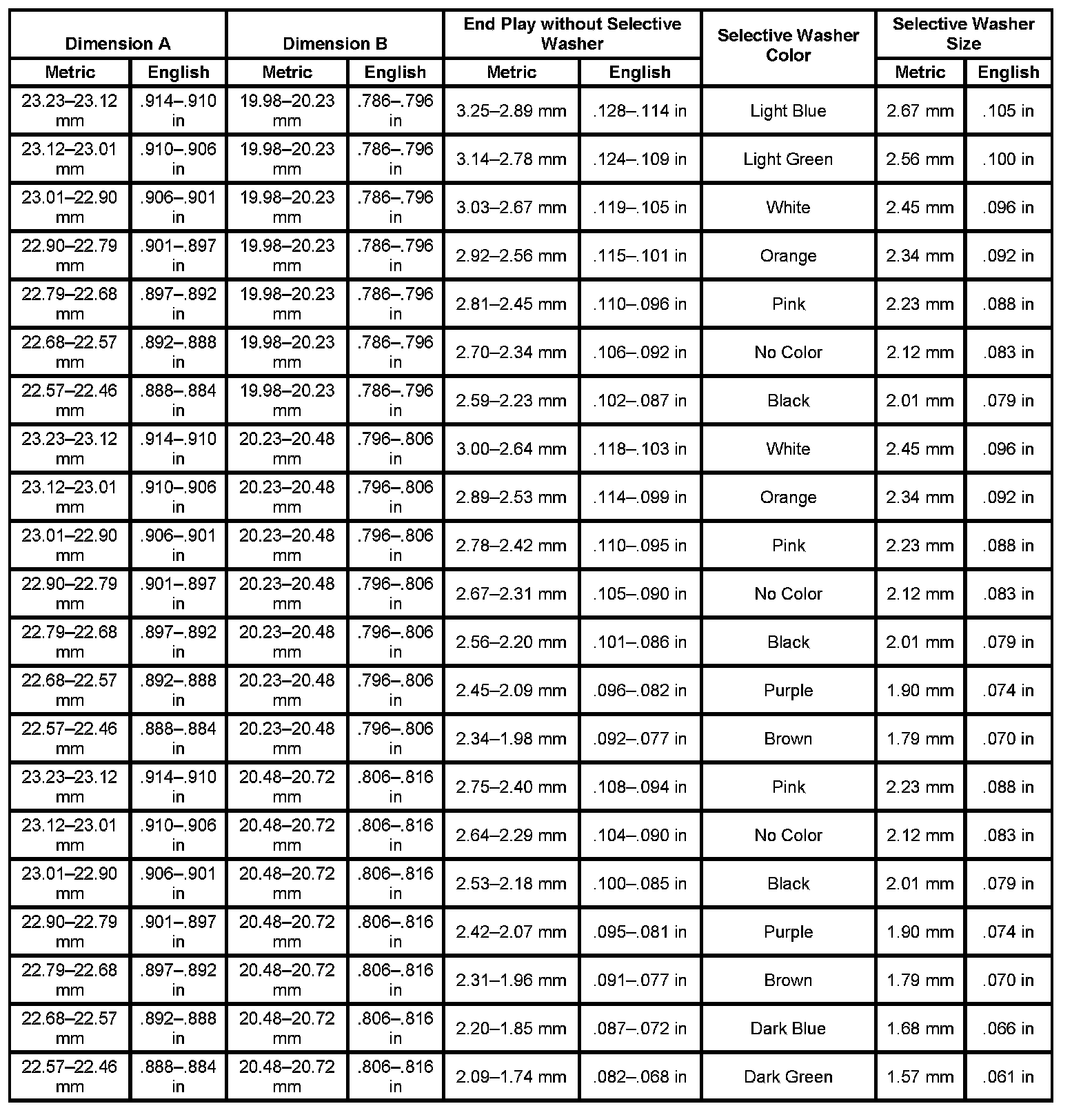 Transfer Case Selective Washer Specifications: