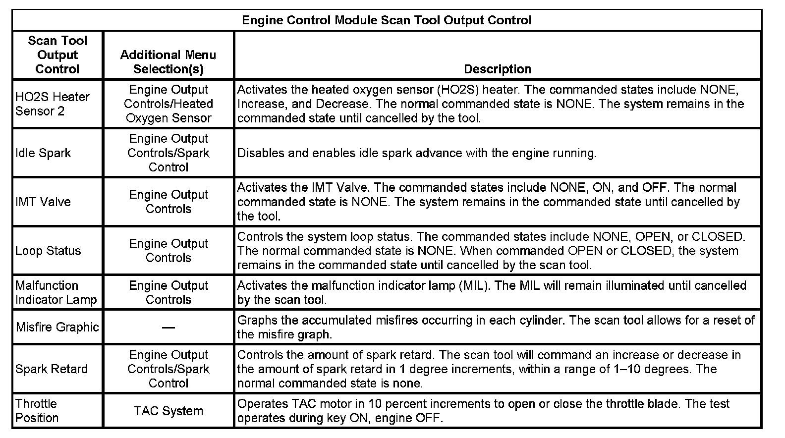 Scan Tool Output Controls