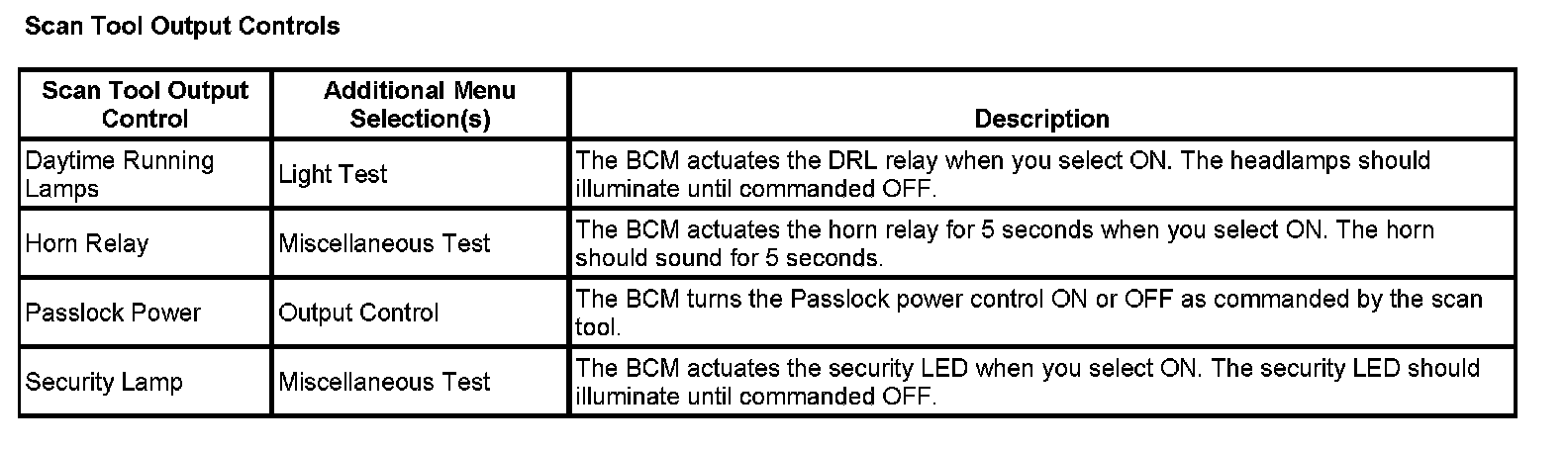 Scan Tool Output Controls: