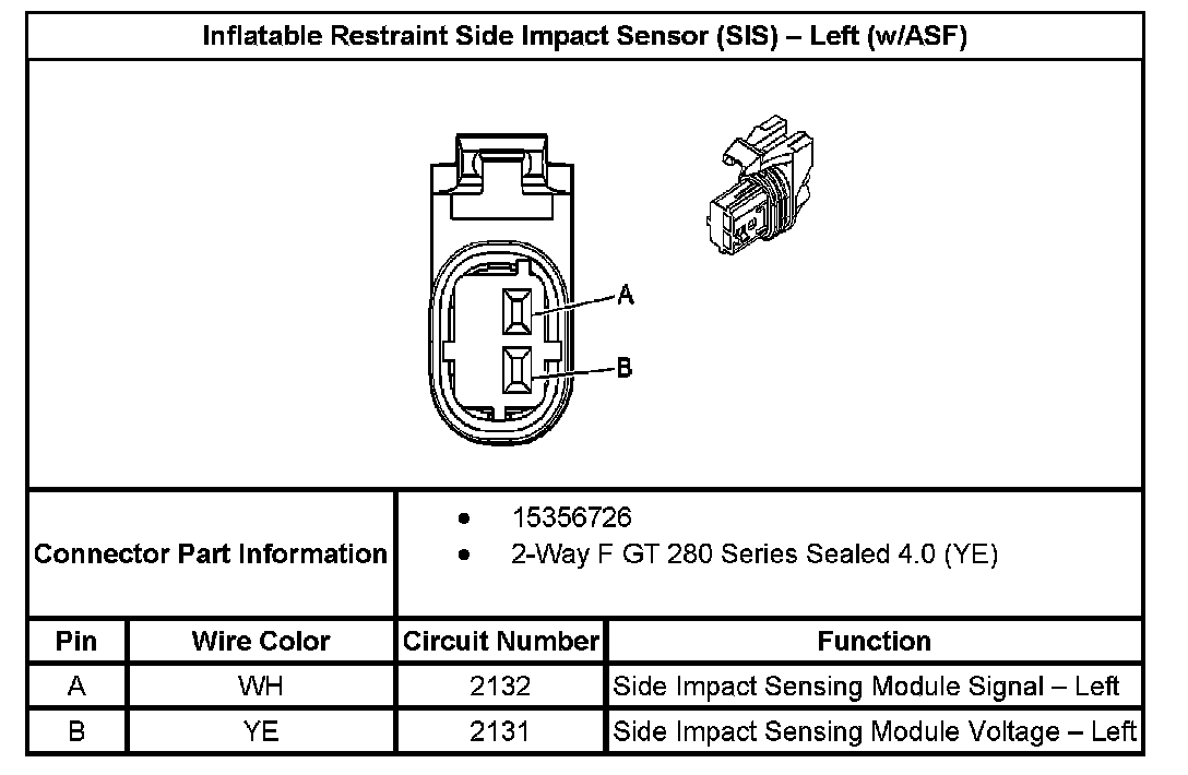 Inflatable Restraint Side Impact Sensor (SIS) - Left (With RPO Code ASF):