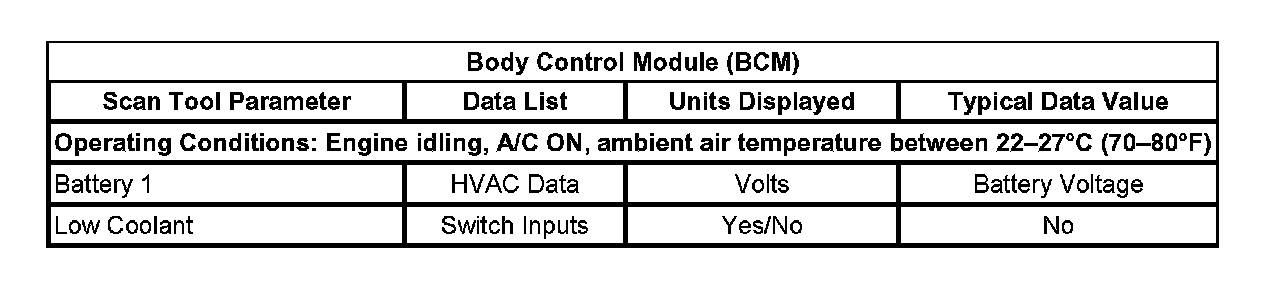 Use the Scan Tool Data Display Values and Definitions Information in order to assist in diagnosing the HVAC Control Module problems. Compare the vehicles actual scan tool data with the typical data display value table information. Use the data information in order to aid in understanding the nature of the problem when the vehicle does not match with the typical data display values.