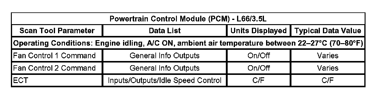 The scan tool data values were taken from a known good vehicle under the following conditions:
